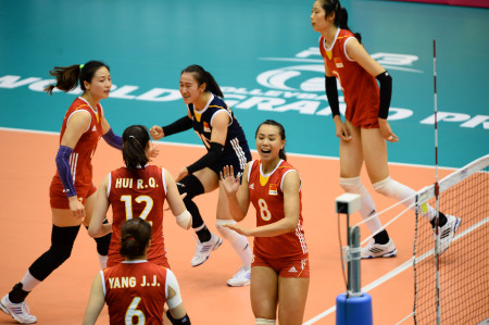 志在必得的中国队第四局完全控制了场上局面,朱婷大力扣杀,惠若琪轻松吊球,王娜飞身救险,中国队精彩的表现赢得现场观众此起彼伏的掌声。16:11,中国女排姑娘们领先对手5分进入第二次技术暂停。接下来的比赛,韩国队打得十分顽强,并一度将比分差距缩小到2分。关键时刻,中国队的两门“火炮”发挥了作用,朱婷和惠若琪的后排扣球连续得分,帮助中国队25:19获得了最后的胜利。