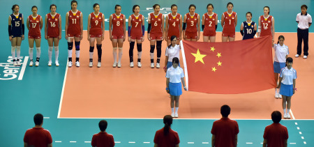 8月15日,中国队球员在入场仪式上。新华社记者 卢炳辉 摄
