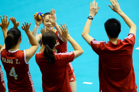 8月15日,中国队球员惠若琪在出场仪式上。新华社记者 张金加 摄