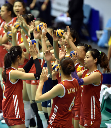 8月15日,中国队球员在出场仪式上。新华社记者 卢炳辉 摄