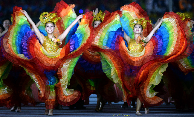 图为演员们在暖场表演中。新华社记者 韩瑜庆 摄