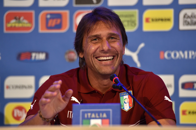 9月1日,意大利队主教练孔蒂出席新闻发布会。新华社发阿尔贝托·林格里亚摄