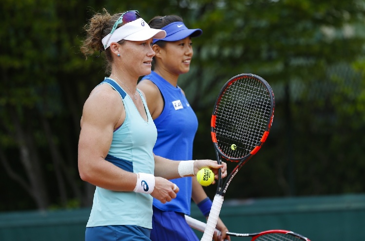 5月26日,中国选手张帅和她的搭档、澳大利亚选手斯托瑟(前)在比赛中。