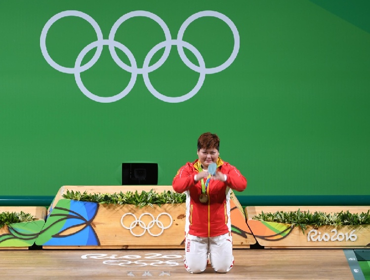 8月14日,中国选手孟苏平在颁奖仪式结束后跪地答谢。