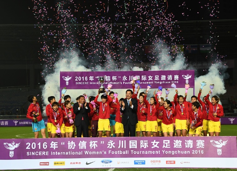 10月24日,中国女足在颁奖仪式上。新华社记者陈诚摄