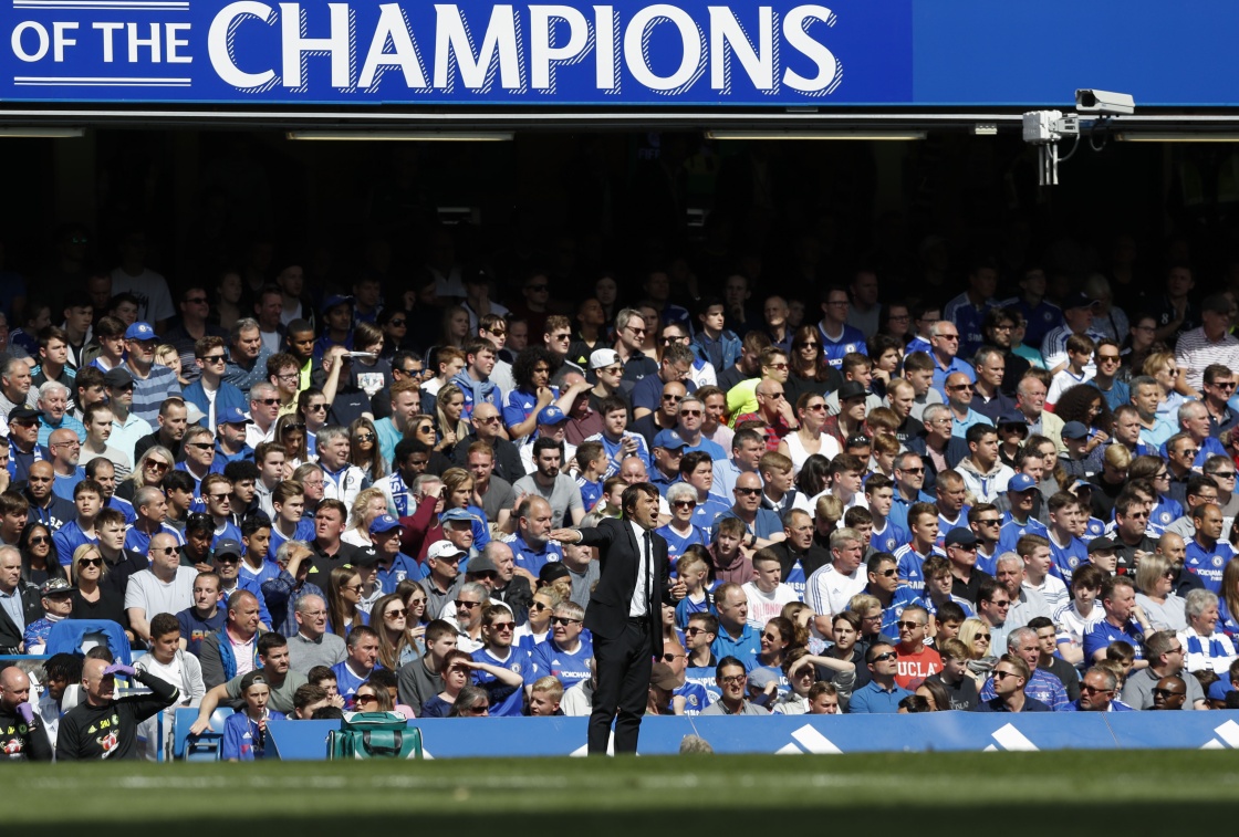 5月21日,切尔西队主帅孔蒂在场边指挥。