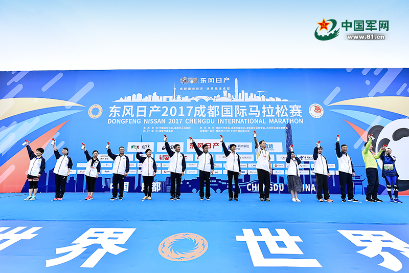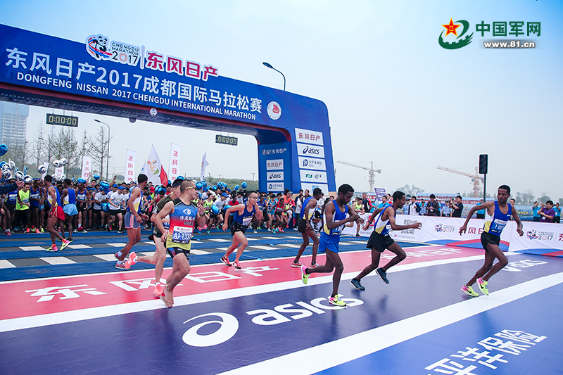 中国军网9月24日电 记者仇建辉报道:9月23日早上8:00,由中国田径协会和成都市人民政府联合主办,成都市体育局、成都传媒集团、成都高新区管委会、天府新区成都管委会共同承办,腾提度体育负责独家运营推广的东风日产2017成都国际马拉松赛,在四川成都鸣枪开跑。来自全球35个国家和地区的2万跑友在赛道上,一同用奔跑感受天府之国的风情和魅力。