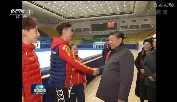 习近平总书记赴首都体育馆看望中国短道速滑队、中国花样滑冰队时,称赞在刚刚结束亚冬会500米短道速滑比赛上夺金的武大靖。