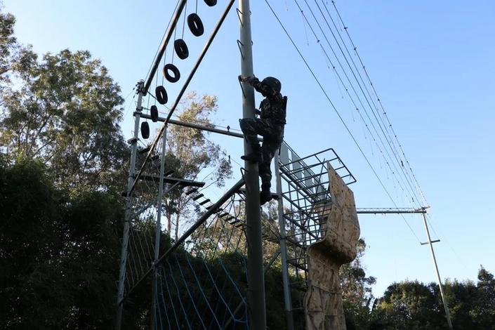 特战队员正在进行攀爬训练。