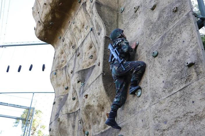特战队员正在进行攀岩训练。