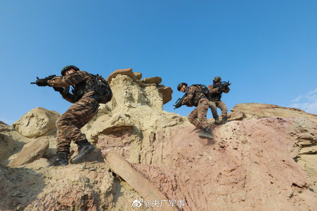 近日,武警新疆总队克拉玛依支队组织特战队员开展了一场实战化反恐演练。“暴恐分子”作案后,向克拉玛依市狼嚎山逃窜,特战队员迅速出动……