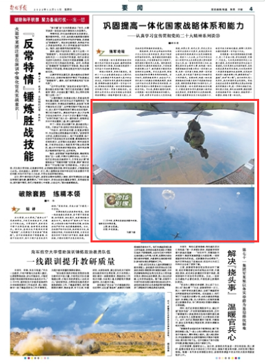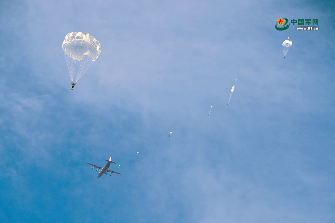 空降兵某旅组织跳伞训练,锤炼官兵伞降技能