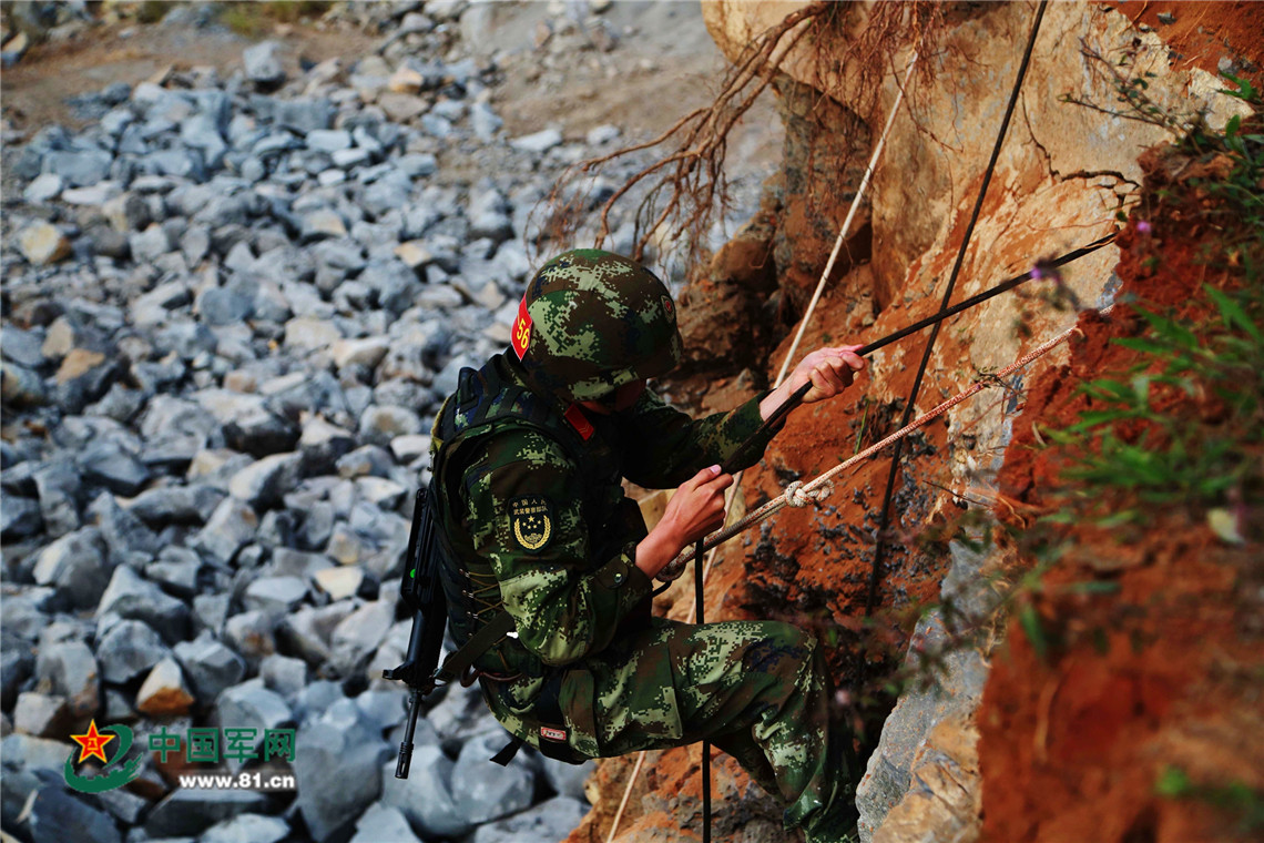 特战队员正在进行野外攀登训练。何野 摄