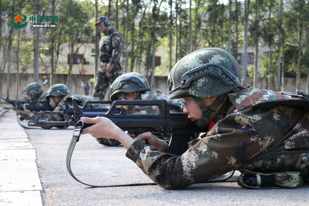官兵正在进行自动步枪精度射击。