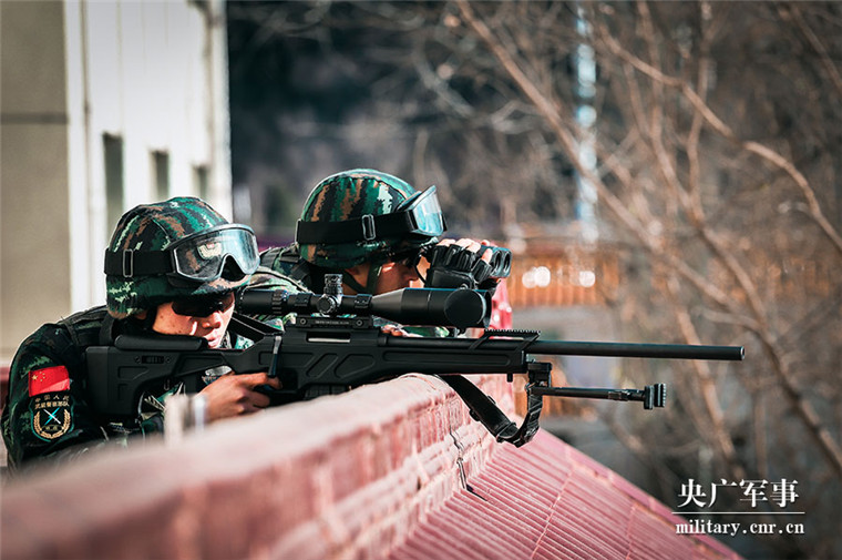 狙击手在制高点瞄准“目标”。曹正玉摄