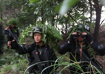武警安徽总队第二支队代号“猎人”的魔鬼训练周进入第三天,山地奔袭、丛林搜索等30余个训练课目轮番上阵。