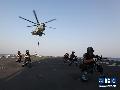 9月26日,中国海军第十八批护航编队特战队员在长白山舰的飞行甲板上开展直升机索滑降训练。海军 护航 特战