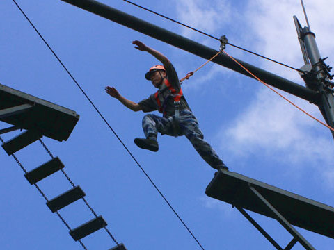 空降兵学院基层政工专业301队学员开展了一系列高空心理行为训练。