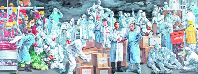 《致敬——最美逆行者》(油画) 张志坚、刘海洋、李卓、张剑、李陶然、高明