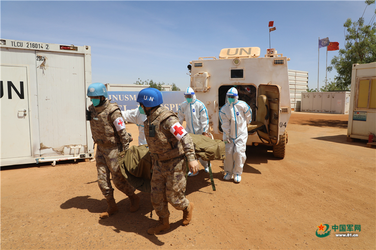 近日,中国第九批赴马里维和医疗分队与任务区外军联合开展“捍卫和平”国际救援演习。