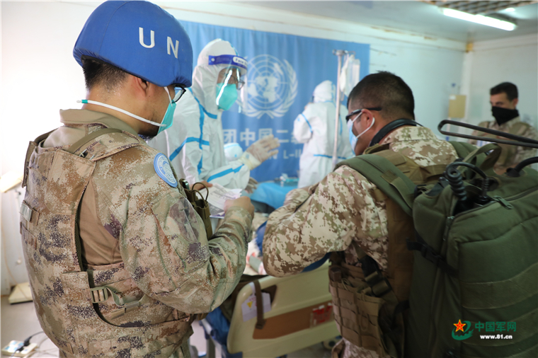 该医疗分队队长王晓晨说:“我们有信心也有能力为任务区各维和分队官兵生命提供有力保障,为维护世界和平贡献更多中国力量,使蓝盔士卫奋勇向前,安心执行任务。”