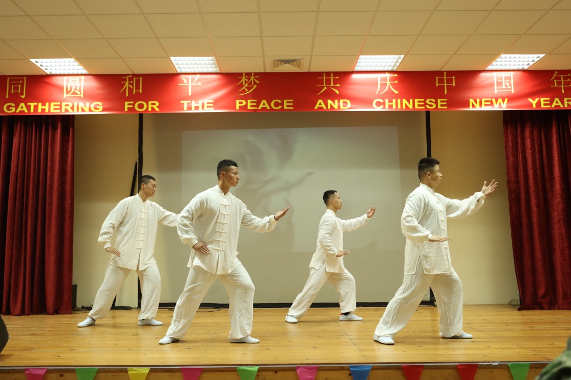 刚柔并济的中国功夫、热情奔放的民族舞蹈、活灵活现的舞龙舞狮……春节前夕,由中国第21批赴黎巴嫩维和医疗分队主办的“同圆和平梦,共庆中国年”春节联欢晚会在联合国驻黎巴嫩临时部队(联黎部队)东区营地举行。