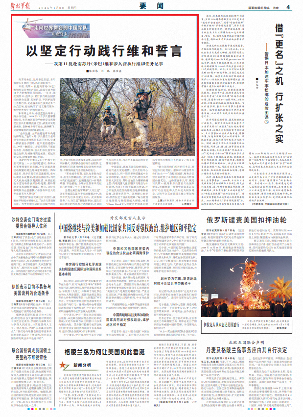 “联合国及你们所在的任务区,将铭记你们的贡献。愿和平与荣誉常伴你们左右……”启程回国前,维和步兵营官兵收到了来自联合国南苏丹特派团的嘉奖信。这份荣誉和认可,既是对我第11批维和步兵营官兵的诚挚褒奖,也激励着一批批中国蓝盔以实际行动生动诠释人类命运共同体理念,让和平之花在异国土地上更加绚丽绽放。