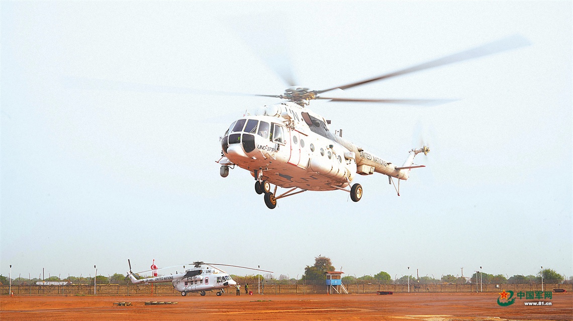 近日,中国第6批赴阿卜耶伊维和直升机分队启动维和友军步兵营兵力轮换空中运输任务。分队官兵克服诸多不利条件,安全高效完成每一次兵力和物资投送行动,展现了过硬的专业素养。图为分队官兵驾机执行运输任务。黄 浩摄
