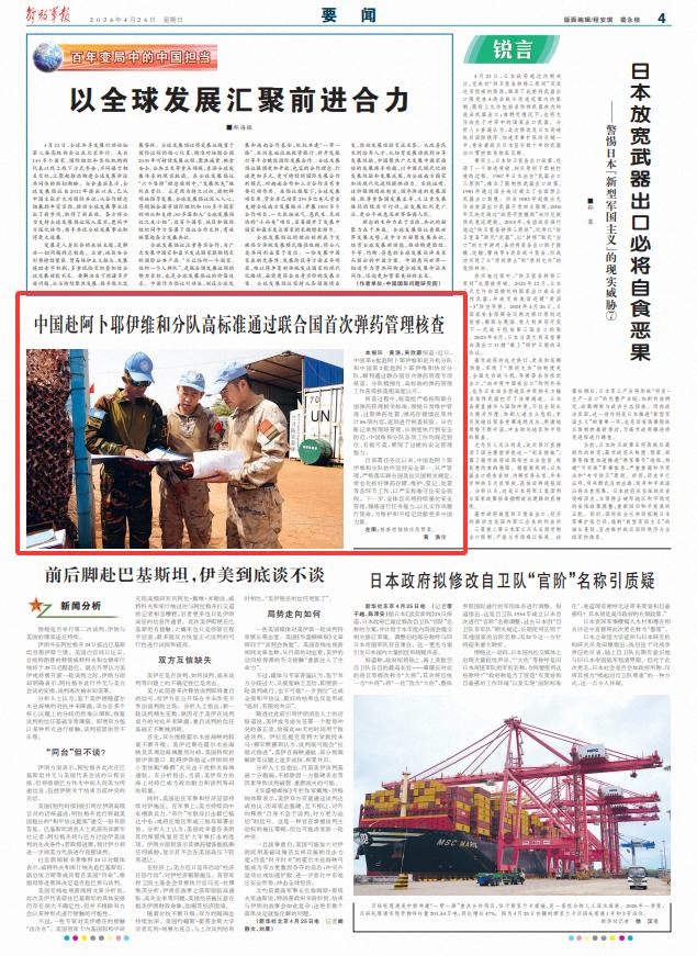 解放军报讯 黄浩、吴欣蔚报道:近日,中国第6批赴阿卜耶伊维和直升机分队和中国第2批赴阿卜耶伊维和快反分队,顺利通过联合国首次弹药管理专项核查。分队精细化、高标准的弹药管理工作获得核查组高度认可。