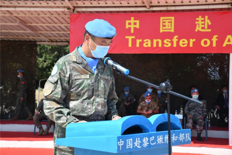 离任指挥长高朝宁简要回顾总结了任务期工作,并对联黎司令部、驻黎巴嫩大使馆和黎巴嫩当地政府等给予的支持与帮助表示衷心感谢。第19批赴黎维和部队指挥长杜嘉作出庄严承诺:“不畏艰难困苦,不怕流血牺牲,坚决完成好各项任务,努力为维护南黎地区的持久和平做出积极贡献,在构建人类命运共同体的伟大征程中展现新风采、铸就新辉煌。”