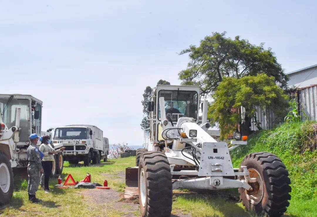 面对突发状况,我没有自乱阵脚,而是仔细想着如何抢修装备,最终这台平路车成功通过联合国装备核查。