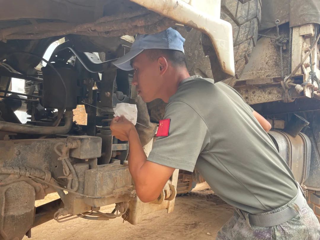 在集训队中,我发挥所长维修各类工程机械。凭借优秀的技能,最终被定岗为维和分队的一名工程机械操作手,同年9月和战友们抵达任务区。