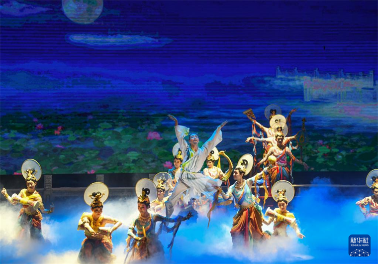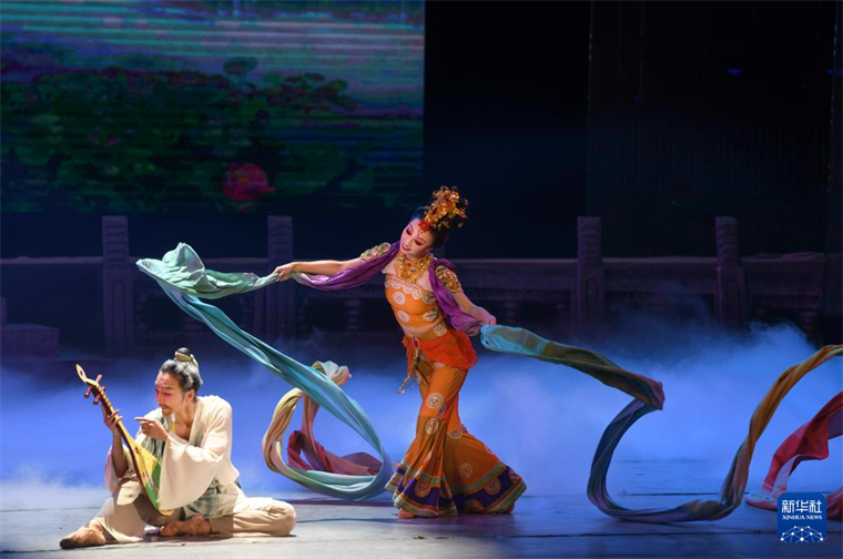 《丝路花雨》由甘肃省歌舞剧院创排,取材于敦煌壁画艺术,博采各地民间歌舞之长,展现了唐朝对外经济、文化交往频繁的盛况。