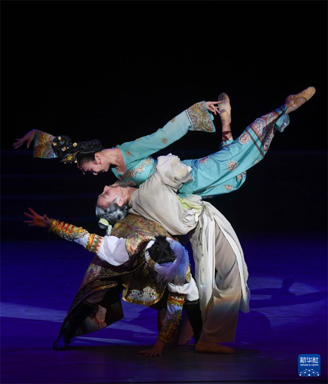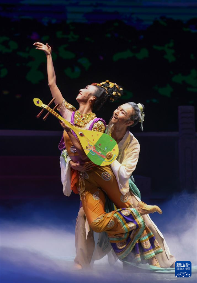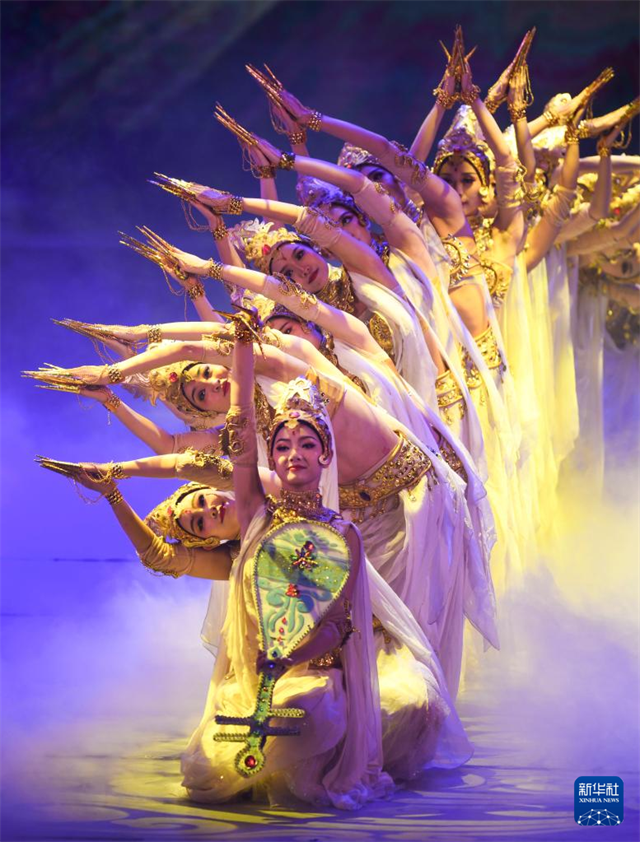 1月2日,甘肃省歌舞剧院的演员在表演舞剧《丝路花雨》。