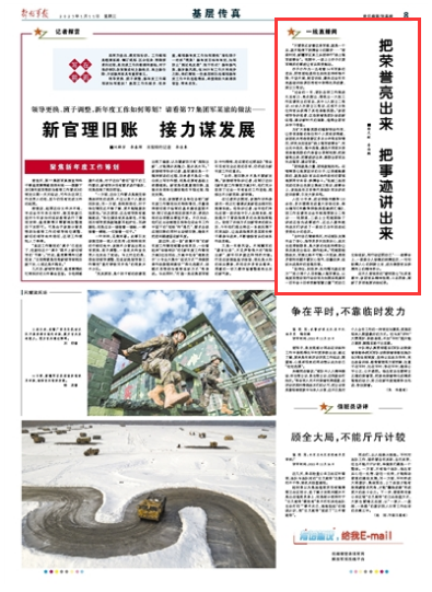 “过去的一年,团队各项工作推进扎实有力、亮点频出,涌现出一大批工作实绩突出的官兵,其中2人荣立二等功,60余人次荣立三等功,还有不少单位和官兵获得了其他表彰奖励。”该团领导告诉笔者,这些荣誉是团队奋进新征程、建功新时代的缩影,值得全团官兵学习借鉴。