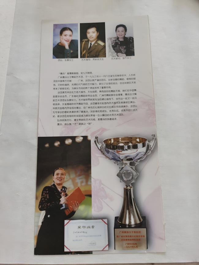 鹰扬舞蹈艺术团分别获得国家文化部和广州市文化局授予的优秀团队和交流奖。