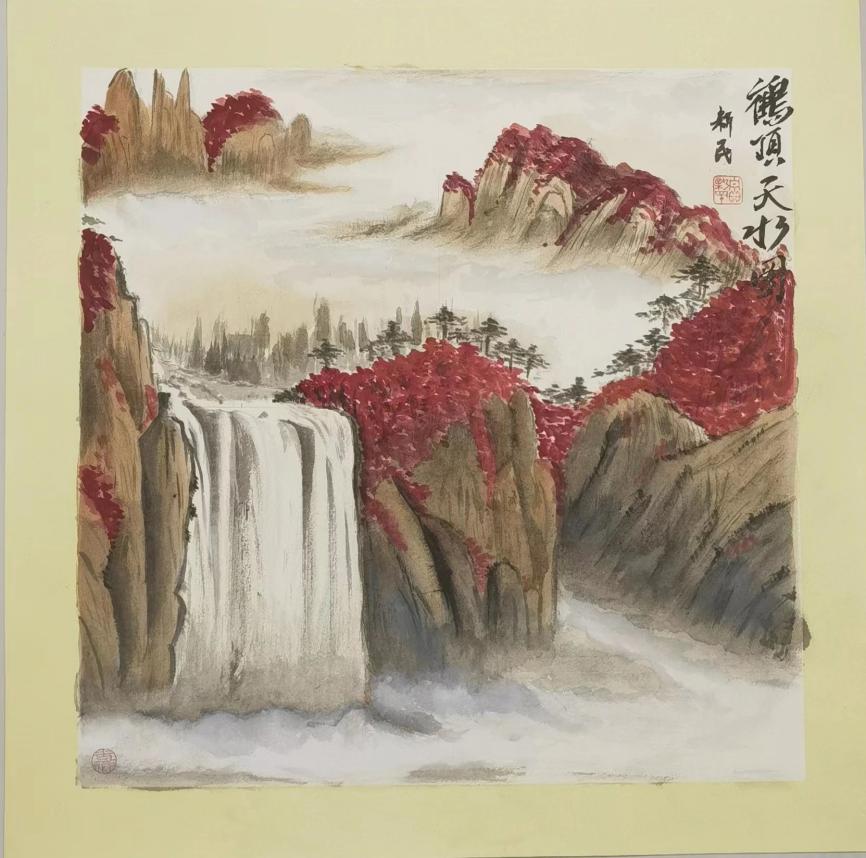 贾新民创作的山水画《鹤顶天水》。