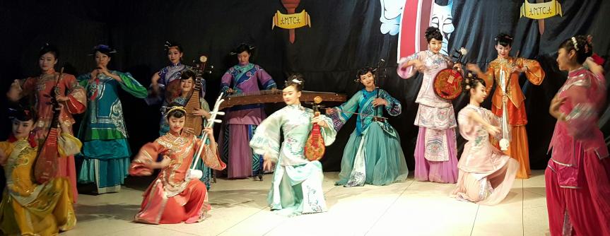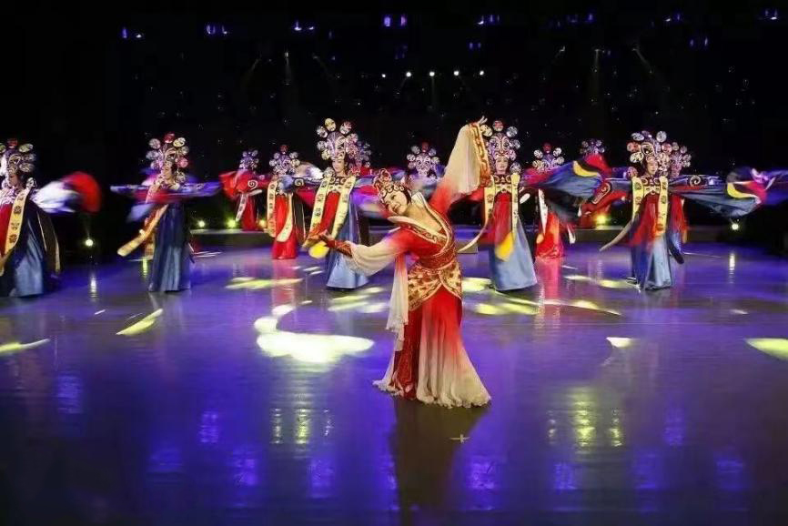 贾新民、张静率团参加摩洛哥国际戏剧节,图为表演舞蹈《京韵大鼓》。