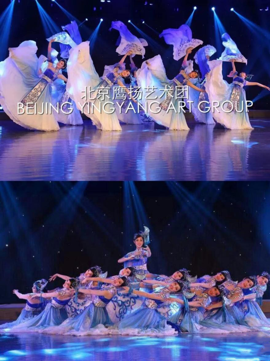 鹰扬艺术团建团30年来,一直以"文舞相融、舞动人生"的正能量为主旨,以丰富多彩的文艺形式和高品质的艺术水准活跃在北京艺术舞台。30年间,原创剧目138个,观众达到了近亿人。群舞巜云裙水袖》,以欢乐和谐为基调,一群富有代表性的人物造型线条流畅,欢快曼妙的舞姿适度夸张,长袖舞动富有云层感;柔美与坚韧、青春与梦想的交融,使得整体造型错落有致,营造出喜庆、祥和的氛围。该舞蹈获舞动北京舞蹈大赛一等奖。