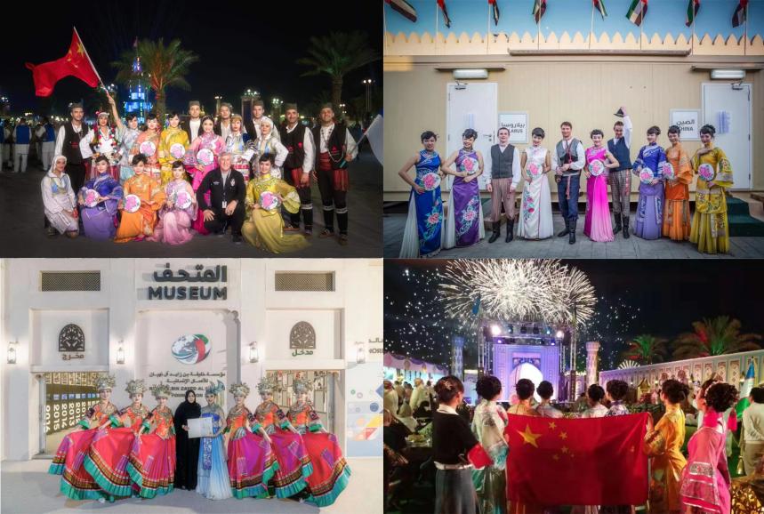 在阿布扎比国际文化遗产节与各国演员合影。