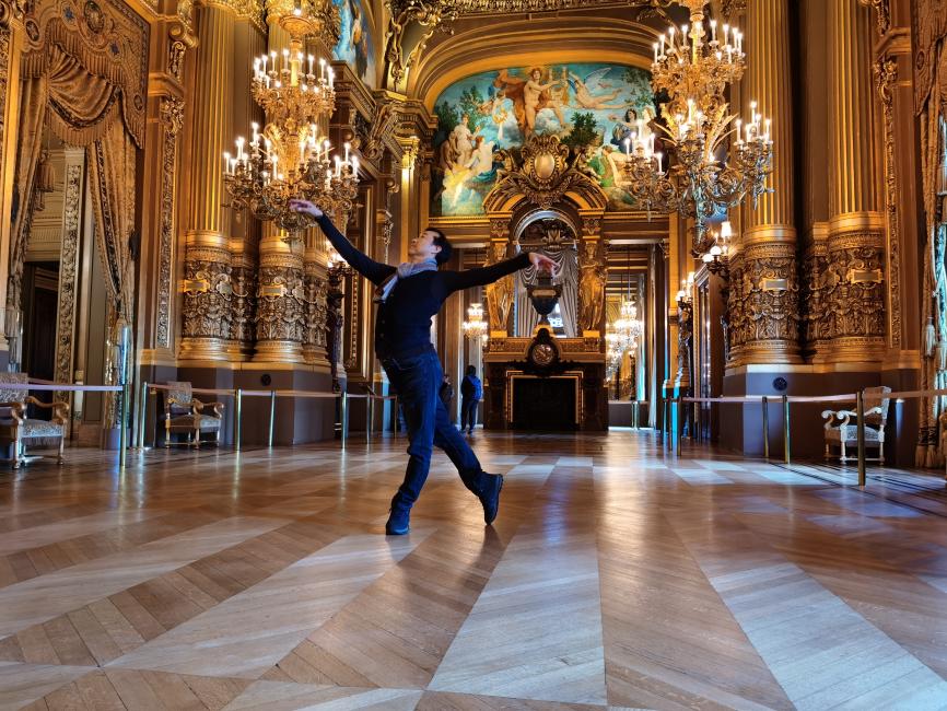 2019年贾新民、张静在巴黎歌剧院皇家舞厅翩翩起舞。