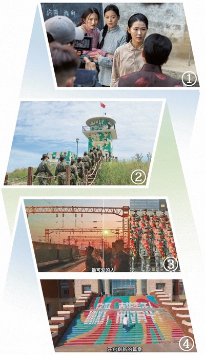 图①:微短剧《烽火桂香》拍摄现场。图②:微电影《巴尔鲁克山的芳华》剧照。图③④:微电影《蜕变》剧照。受访者供图 制图:扈 硕