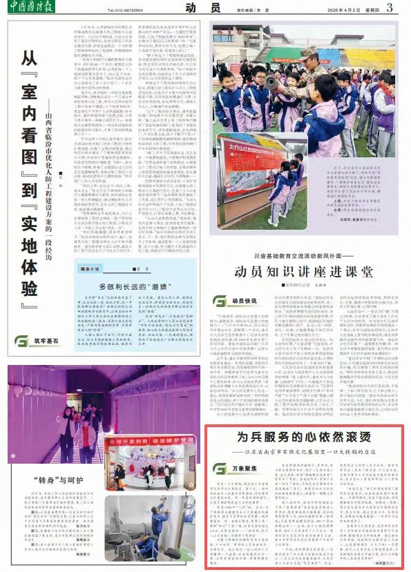 在军供文化展馆里,我经常听到军供人员如数家珍地讲述克服野外作业困难、提高供应水平的故事。他们继承光荣传统、创造新的业绩的信心与决心,让我豪情满怀、斗志不减:一旦需要,我们八兄弟仍然上阵发挥余热,为保障部队打胜仗贡献力量,我们为兵服务的心依然是滚烫的!
