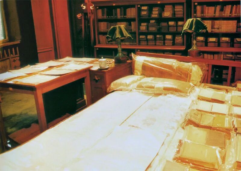 毛泽东同志一生遨游在书的海洋中,一生与书相伴。图为毛泽东同志在中南海的卧室,床上摆放着大量图书,以便随时阅读。 王建民摄