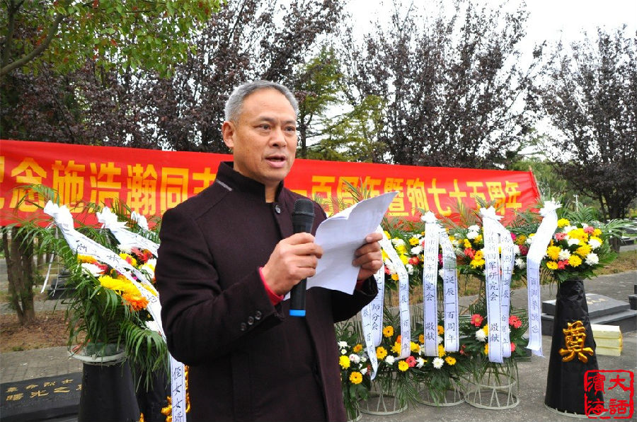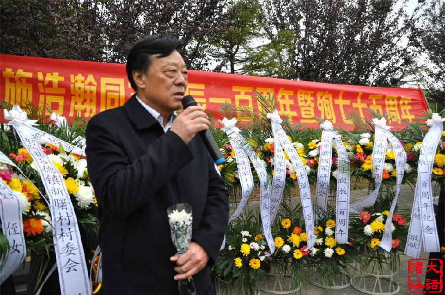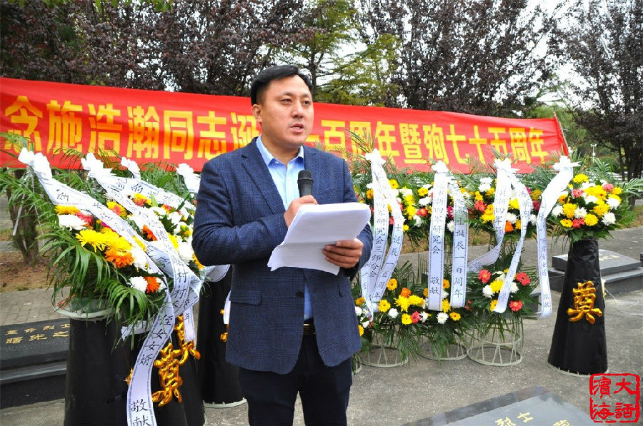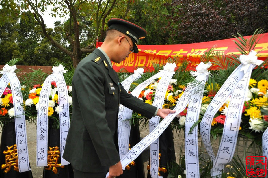 11月5日,滨海县新四军研究会、淮安区新四军研究会、响水县新四军研究会在江苏省射阳县联合举办施浩瀚烈士诞辰100周年纪念活动。烈士生前老部队、现31695部队的朱玉刚中尉,射阳县人武部部长陆晓东,淮安区新四军研究会会长孙一峰,滨海县新四军研究会会长徐振理,响水县新四军研究会会长王万佳,烈士继子施问才及烈士亲属代表等100多人参加活动。