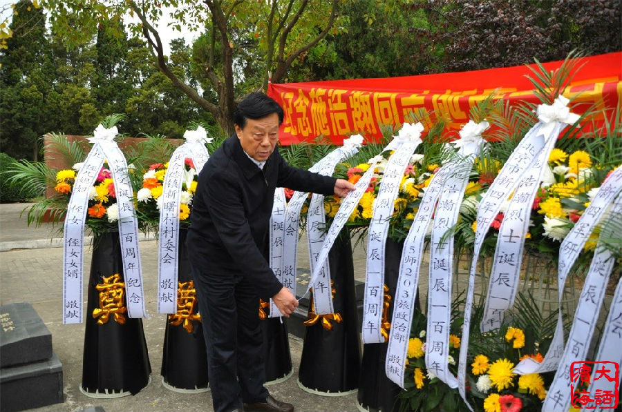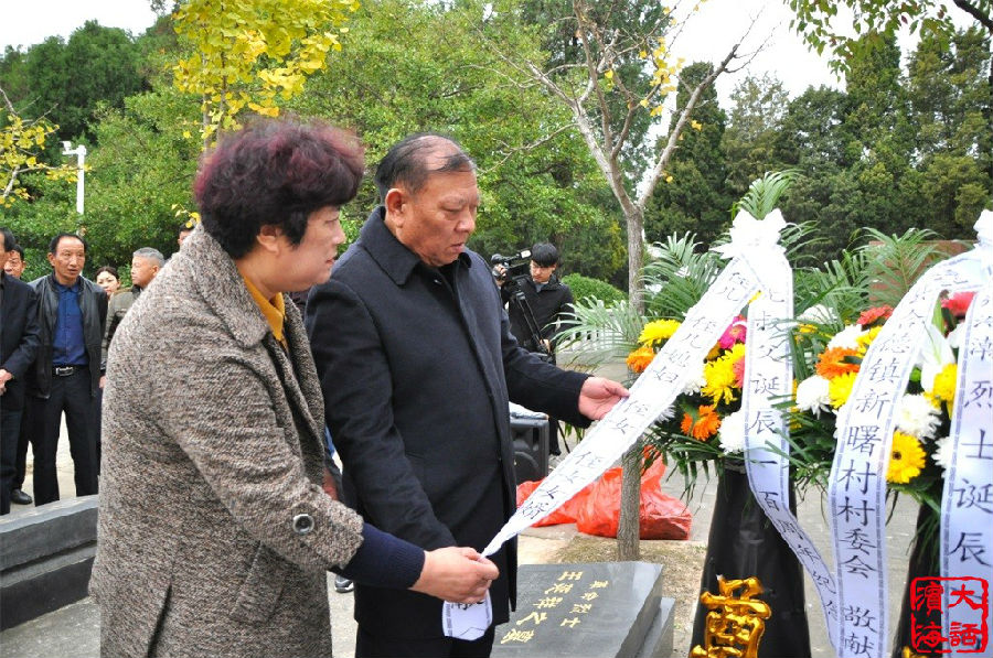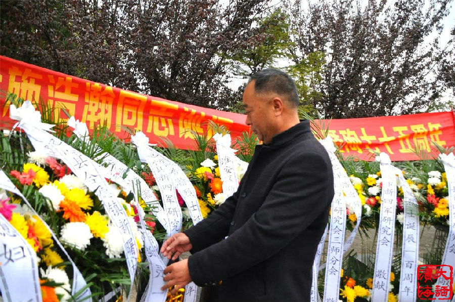 31695部队政治部、北京新四军研究会三师分会、盐城市新四军研究会、各主办单位、烈士原陵墓所在地射阳县新曙村和烈士亲属向施浩瀚烈士敬献花篮