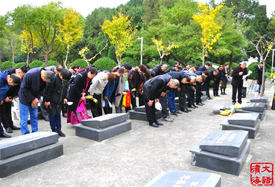 在射阳县烈士陵园施浩瀚烈士墓前举行的祭奠仪式