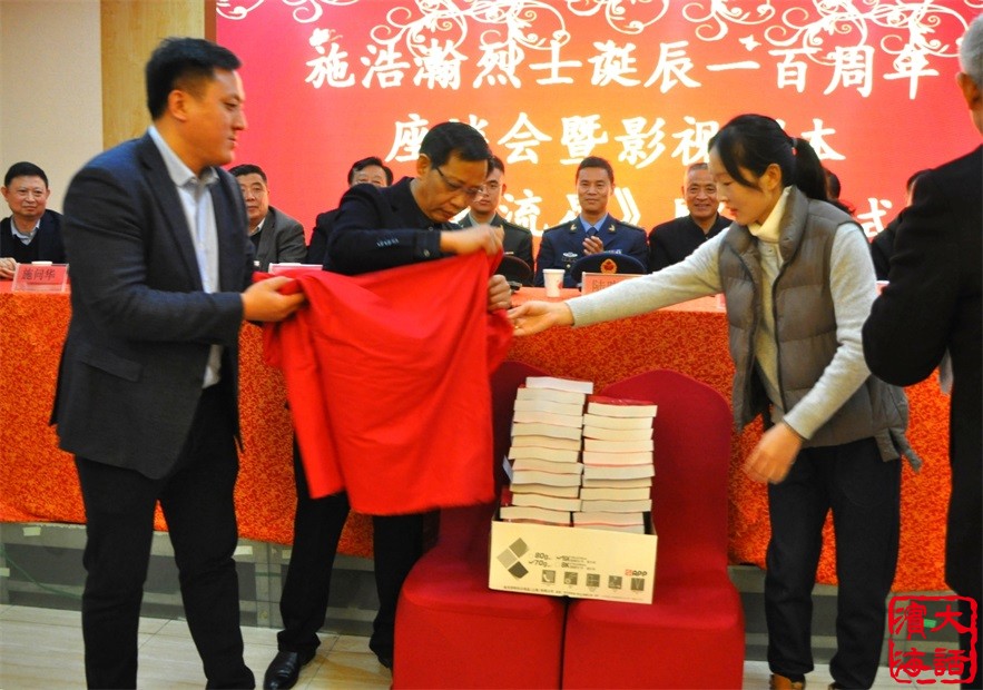 在射阳县城香格里拉大酒店举行“施浩瀚烈士诞辰100周年座谈会暨影视剧本《浩瀚流星》赠书仪式”