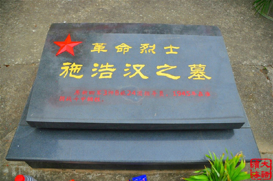 据了解,施浩瀚,1920年10月31日(农历9月20日)出生于江苏省阜宁县大淤尖乡镇海村(今滨海县淤尖村),多年的私塾求学中,刻苦进取,寒暑无间,文名早著,学成之后曾在大淤尖、现射阳的横港等地设馆课徒,成为远近闻名的塾师。1940年12月,施浩瀚弃笔从戎参加八路军阜宁大队,在他的动员和感召下,堂弟施浩德夫妇、表弟杨教信、还有同村的陈洪道、马文彪二位青年也同时一道参军,在地方“打埋伏”期间又将郑佳彪等一批热血青年引上革命道路,参加了新四军。施浩瀚不仅怀有一腔热血投身抗战,而且有着深厚的文化底蕴,在八路军、新四军队伍中,迅速成长,先后在八路军阜宁大队、新四军3师8旅24团的基层连队,8旅政治部、3师政治部任职,后主动要求下连队,投身杀敌前线。施浩瀚曾经参加天赐场镇压李炳生、陈家港战斗、合德战斗、杨庄战斗、阜宁战役等若干战役和战斗,1945年9月,在两淮战役中,身为新四军3师8旅24团指导员的施浩瀚英勇牺牲,施浩瀚同志为盐阜地区抗日根据地和建立、巩固和发展贡献了自己的力量。两淮战役结束后,由新四军部队派员扶灵,烈士的堂兄施浩德用木船将装有施浩瀚遗体的棺材,运回家乡阜东县(1941年9月20日由阜宁县析出、今滨海县)淤尖乡安葬,地方政府组织由三个村的干群代表、民兵参加的隆重的迎灵和安葬仪式,部队首长在葬礼上讲话。新中国成立后,烈士父母亲到射阳县安家,烈士姐妹相继出嫁到射阳,上世纪60年代,在烈士父母亲的主张下,为了祭奠方便,众亲属将施浩瀚棺材由滨海县淤尖乡搬柩到射阳县合兴乡中北大队(今新曙村),建成了砖混结构的烈士陵墓;2010年,响应慰烈工程号召,烈士忠骸迁葬到射阳县烈士陵园。