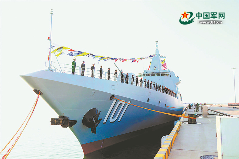 无独有偶。1月12日上午,我国首艘自主研制的055型万吨级驱逐舰南昌舰,在青岛某军港正式入列。